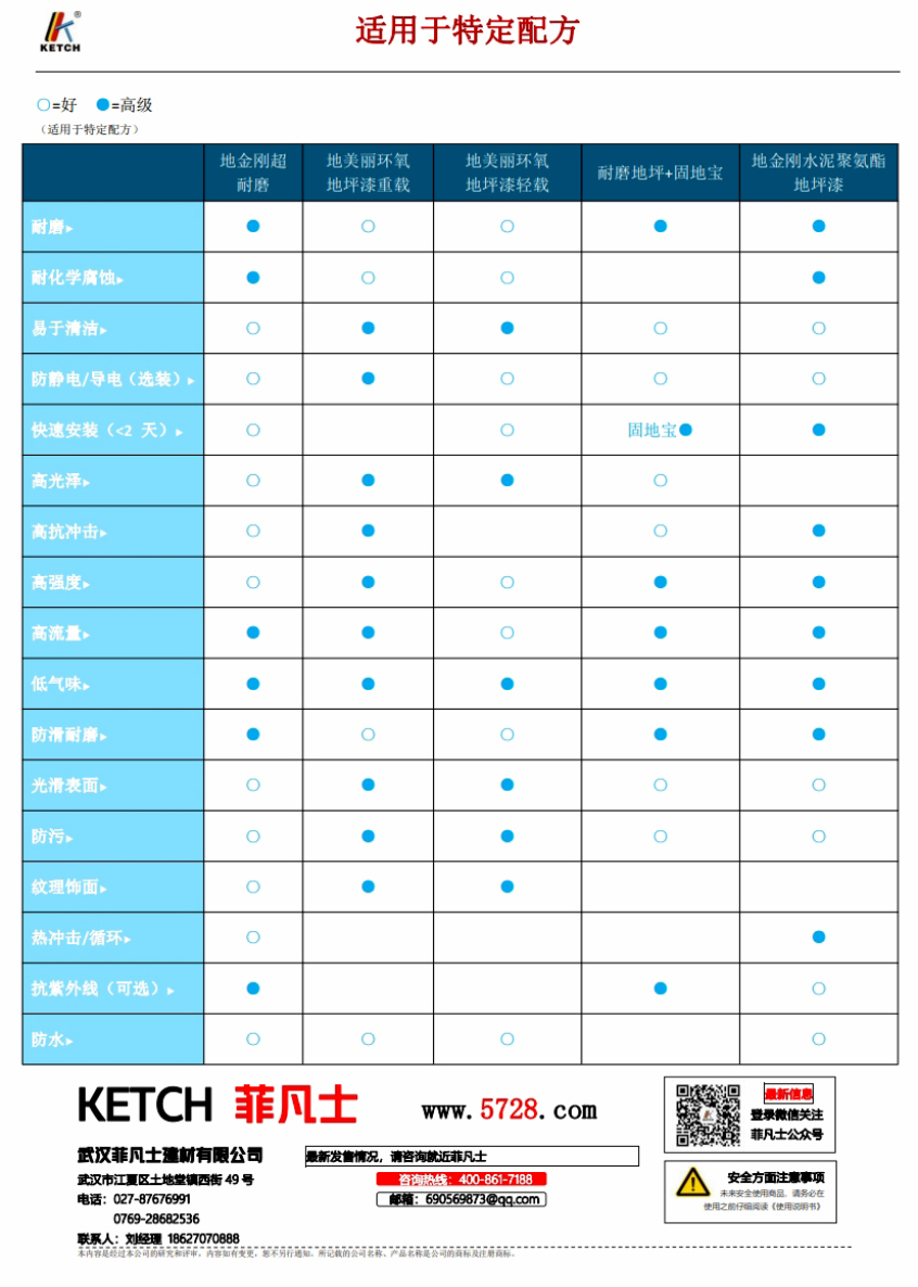 耐磨 抗菌 易于清洁 防静电\导电 耐火 高抗冲击 高流量